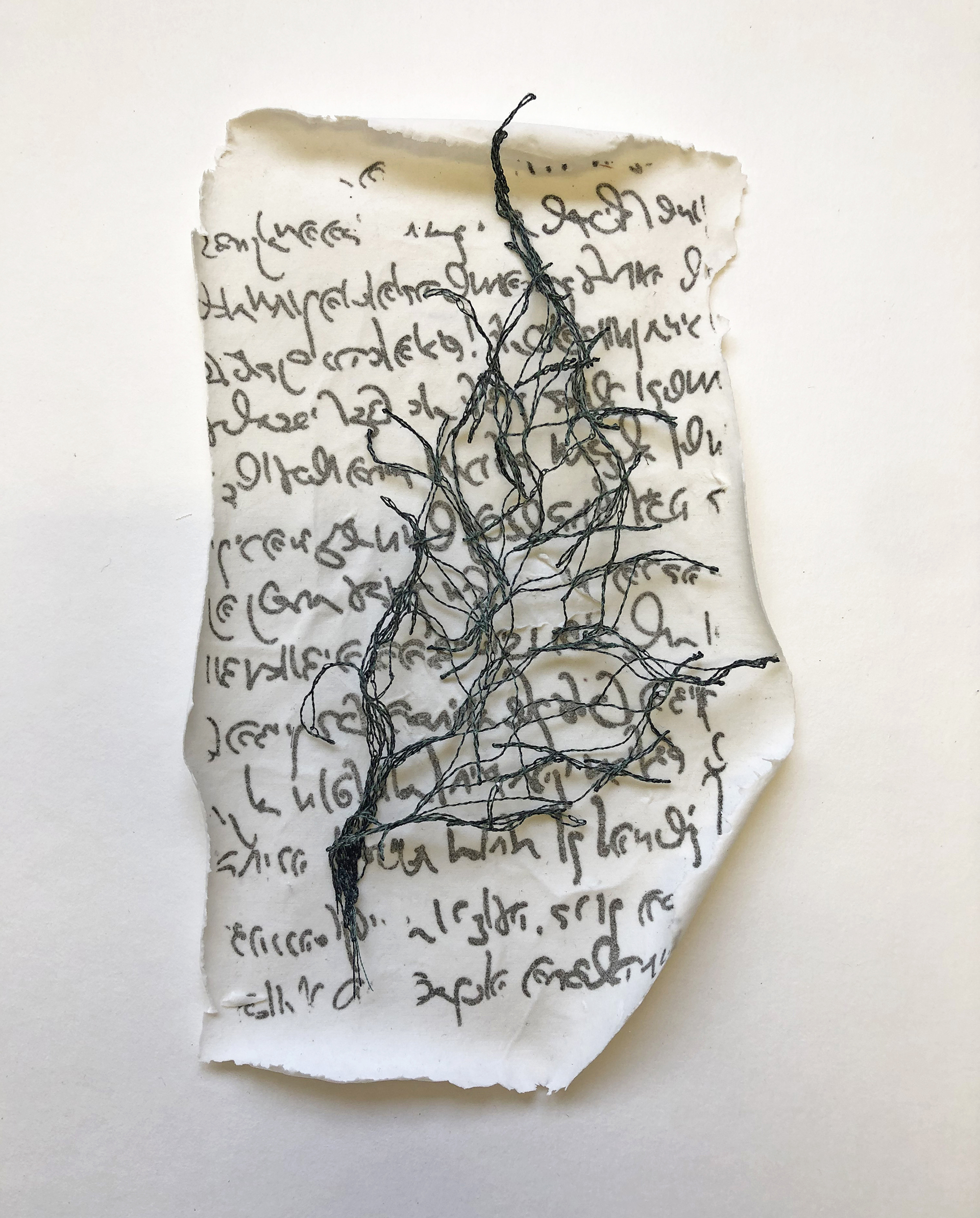 תמר ברניצקי שואבת השראה מהטבע שנגלה לפניה במלוא יופיו בחורף האחרון בהרי ירושלים. ההשתהות וההתרגשות מצמרות העצים הנשגבות, גזעי העץ העשירים במרקמים, קומפוזיציית היער והענפים הסבוכים הנעו עם הרוח, כל אלו הבזיקו בה את הרעיון לתערוכה זו.היער היווה עבורה מקום למחשבה והרהור, סבך הענפים כסבך המחשבות, לבלוב וצמיחת העצים כאנלוגיה לטרנספורמציה אישית כאמא וכאדם. היער כחוויה קוסמית הוא מקום לביטוי וריפוי, מקום של חיים, בו האמנית מארגנת מחדש את הנופים ומייצרת תפיסה חדשה בין אמנות, טכנולוגיה וטבע. מערך הכוחות שביער הנוצר בתערוכה מוגדר מחדש, כך שהגזע האיתן הופך לחסר יציבות ומתנפנף ברוח ואילו העלים שבמציאות שבירים, נתפרים כחומר עמיד. הטקסט המבליח ביצירות, לקוח מברכות שברניצקי קיבלה ברשתות החברתיות לכבוד הולדת בנה, עם תחילת העבודה על התערוכה. מוטיב העלים חוזר ביצירה כמסת מילים, הברכות תורמות לתחושת המקצב העולה מבין העבודות כפי שלבלוב וצמיחה מיטיבה עם הטבע.גוף העבודות מוצג כתכשיטי טקסטיל עדינים, אמורפיים ופיוטיים. ברניצקי בוחנת את שבריריות הנייר מול עמידות הבד כשלעיתים מתחלף תפקידם. היא מקנה ליצירות מראה מתפורר ומתקלף בטקסטורות ושכבות עשירות כשמכונת התפירה הופכת מאמצעי חיבור לכלי ציור. תצלומי היער הופכים לדימויים מודפסים בטכנולוגיה מתקדמת של דפוס דיגיטלי ומשם מתחילה מלאכת עבודת יד עמלנית של הדפסת משי, תפירה ורקמה בבדים אטומים ושקופים, בערבוב מרשים בין בדי כותנה, משי, שיפון, ז'אקרד, אורגנזה וטול, הנעתרים זה לזה.כחלק מתהליך היצירה, הזמינה ברניצקי את אמנית הקרמיקה, אילה צור, לקחת חלק בתערוכה. המפגש החומרי בין הטקסטיל לפורצלן פורץ את גבולות החומר וזהותו, בין הקנבס היציב לפורצלן העדין, סיב הבד הופך לעמיד מול פיסת הפורצלן השברירית. שתי הדיסציפלינות נפגשות ומתאחדות ועוברות את אותו עיבוד חומרי מרתק של דפוס, רקמה ותפירה בסדרת יצירות חדשה.התערוכה היא דיאלוג מפרה בין האמנית לטבע, בין אדמה לשמיים, בין גזע לעלה, בין טקסטיל לפורצלן, בין תפר לנייר ובין האמנית לבין המתבונן.