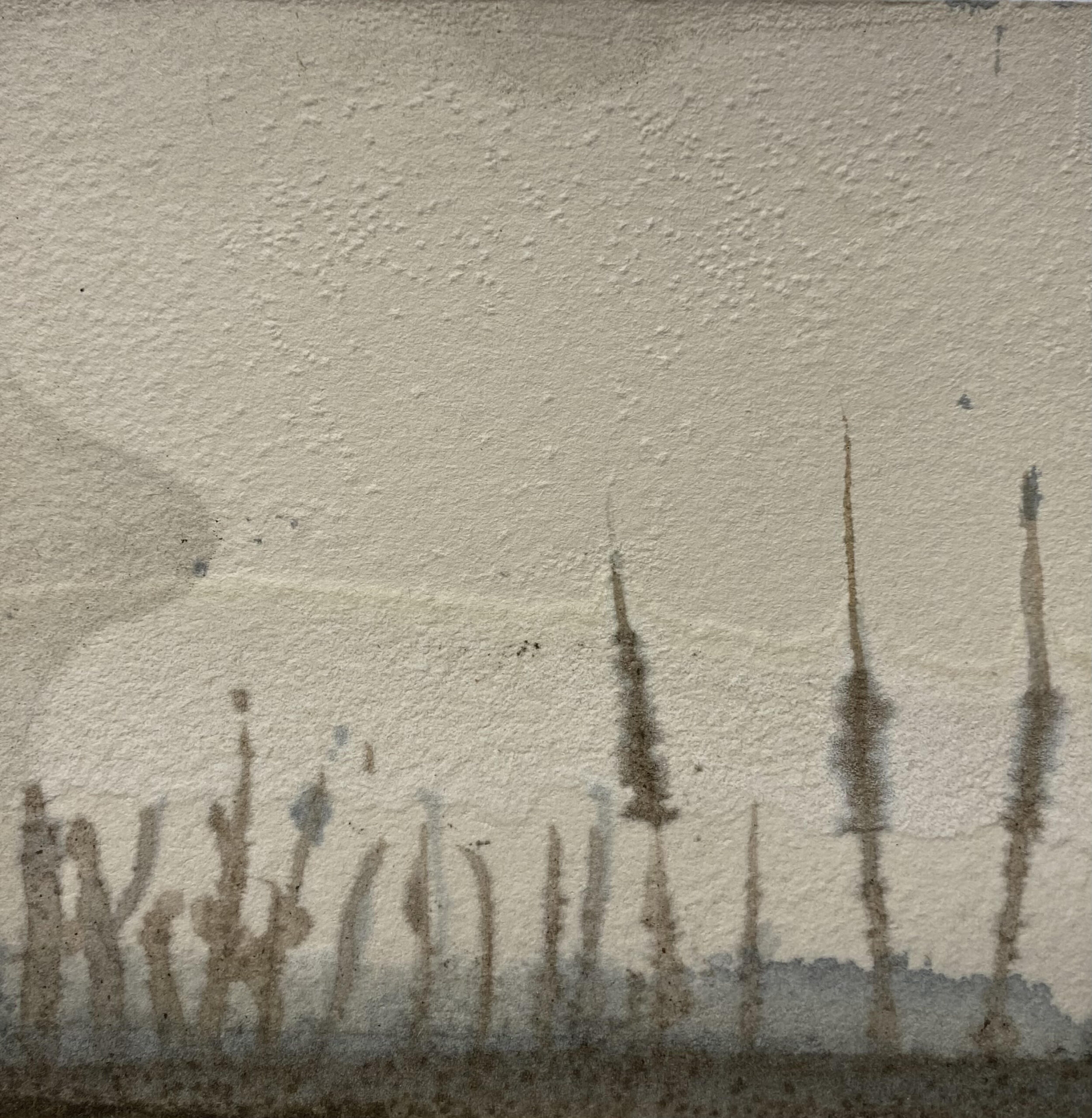 אלמנטים של פנים וחוץ מתערבבים בעבודות זה בזה. ציורי הנופים הם כתמי צבע רכים, המייצרים נוף מופשט עד חלומי. ובמיצב המרכזי בין המרצפות מוקרנת עבודת וידיאו, שבה נראים פרחים צפים על פני נהר. הזרמים בנהר מניעים את הפרחים בתנועה רפטטיבית. התנועה היא המסע קדימה ואחורה בזמן ובין יבשות, כאילו נגזר על המהגר להיות לעולם חצוי. בן אריה חופרת במרצפות, כדי למצוא שורשים ומתוך הבורות מופיע ההווה מגולם בפרחים.