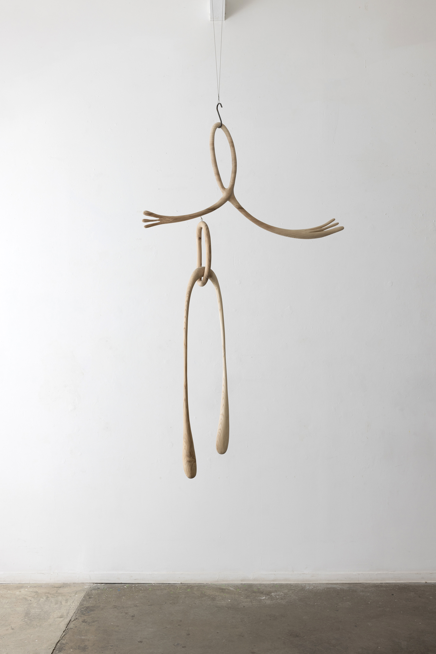 חלל הגלריה המרובע, המקובע, הוא מרחב היצירה, שמתוכו נוצרת קומפוזיציה לירית מתוחה וסתורה. עץ כבד מרחף באוויר כמסה קלת משקל. צורות רכות מסתירות מאמץ גופני קשה. אלתור של צורות מפתיעות מדגיש את התנועה החורגת מן התבנית הקבועה. מוטיבים חוזרים מופרים על ידי סינקופה. הדפוס נקטע, הצליל נאלם או מושהה, ומה שאמור היה להיות אינו בנמצא. המרחב חי ונושם, חסר ומתמלא.