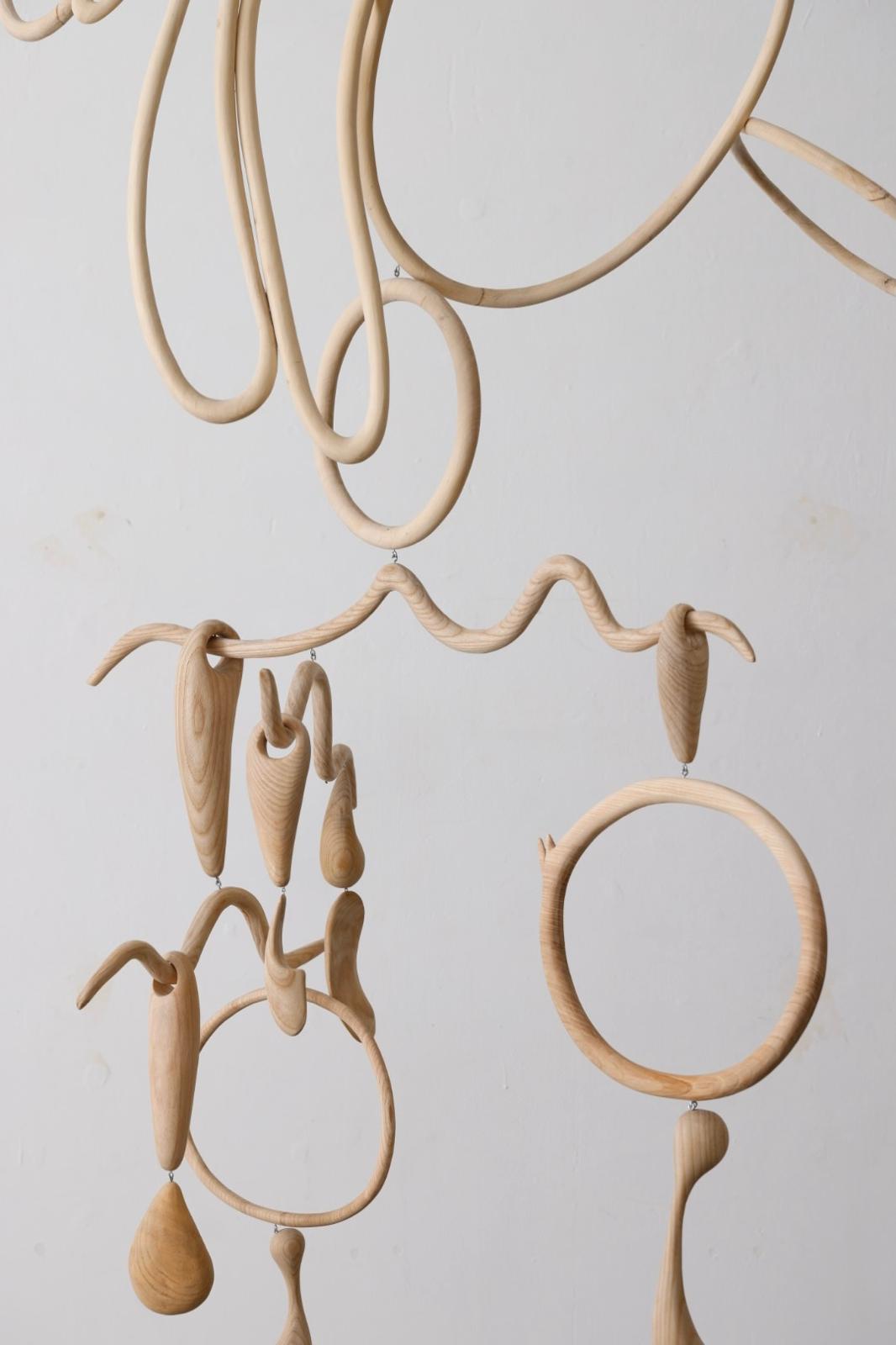 אורנה מנצחת על המורכבות הזו באמצעות אצבעות הדימיון שלה, מותחת חוטים מחוספסים בין היענות לבין התנגדות החומר. היא קושרת ומנתקת, נוכחת ונעדרת, קוטעת את המכלול למקטעים ושבה ומחברת אותו. בנדנדה הקוסמית שהיא מרכיבה העץ מניע את האוויר שמקיף אותו, מפלש את החלל בדמותו. זה מופע עץ אינטימי אבל מלא עוצמה, שיחה בין רוח היוצרת לרוח היוצרת אותה.